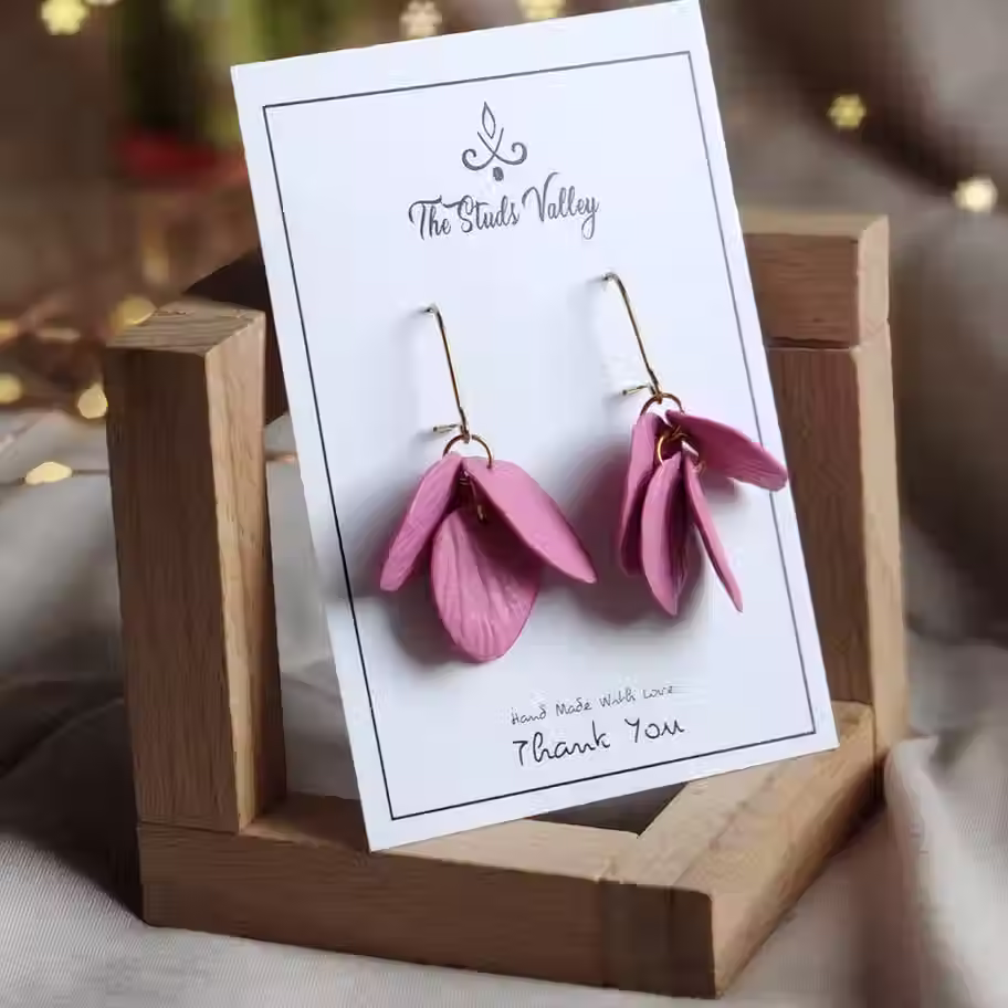 Discover Gink Loe at The Studs Valley! Flexible, lightweight pink petal earrings ensure all-day comfort. The gold hook with lock adds modern flair. Shop now!