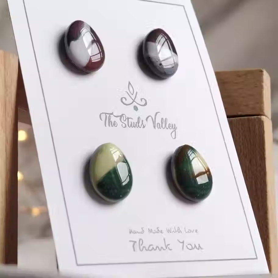 Discover Xior Amy from The Studs Valley: a maroon and army-look collection of egg-shaped studs in two pairs. Crafted with precision, these trendy pieces will enhance any accessory collection and transform your look.
